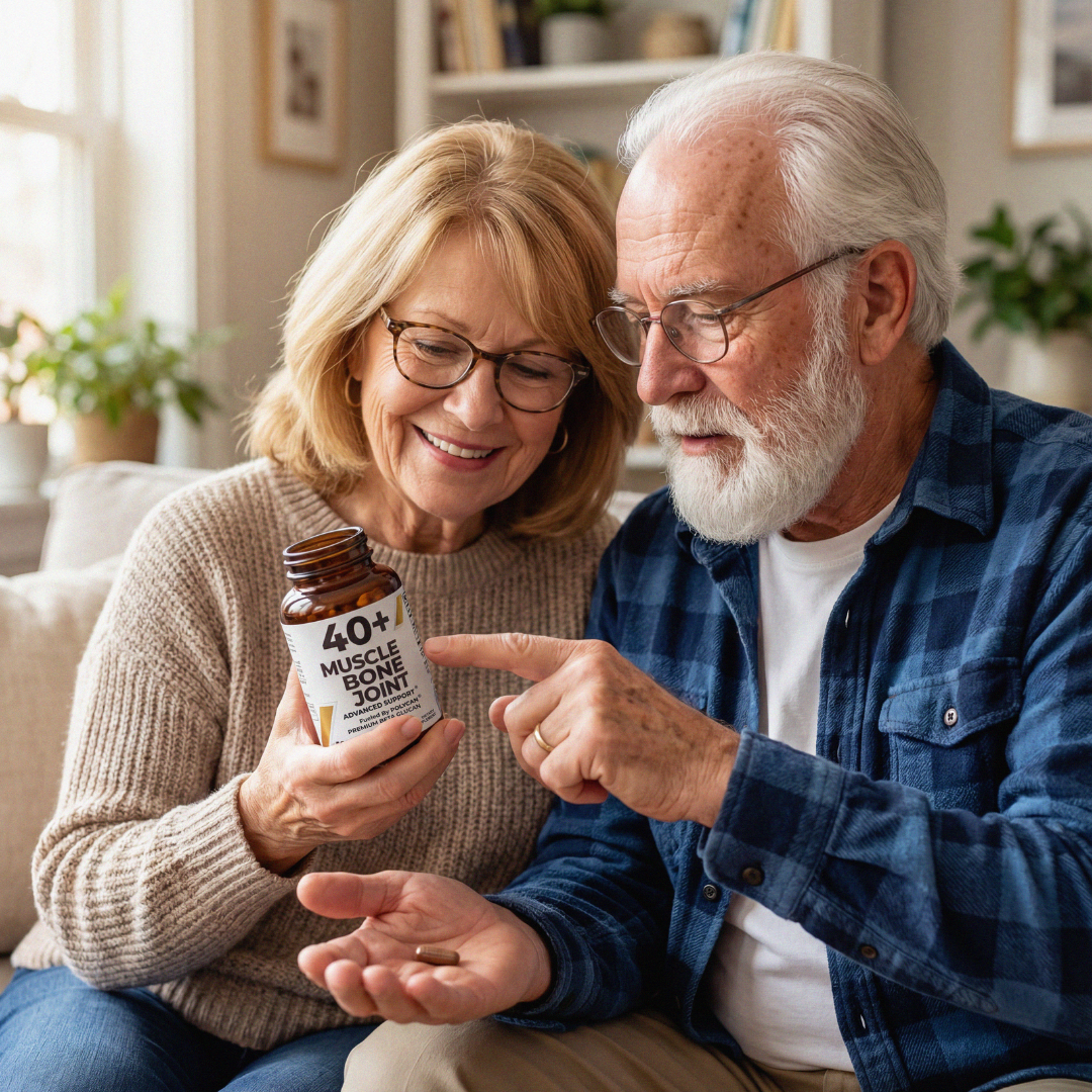 40+ Muscle, Bone & Joint Advanced Support is a daily supplement formulated to help adults maintain strength, mobility, and resilience as they age.